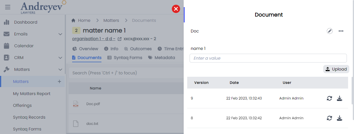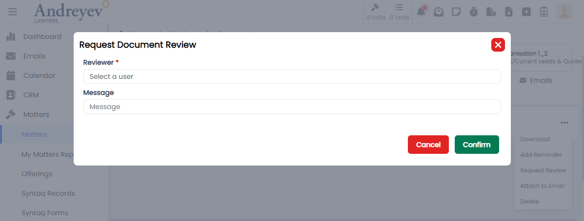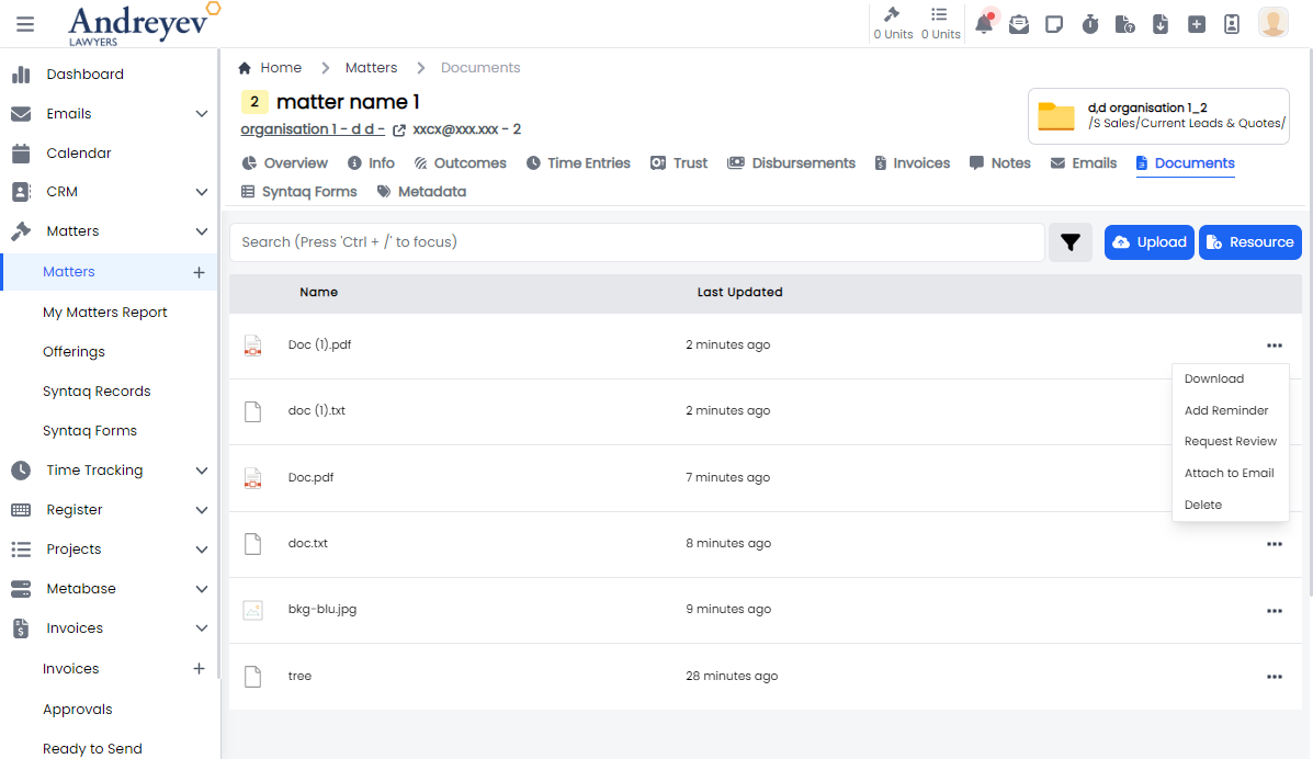 This component is for listing each document in the document list, with actions like download, add to reminder, RequestDocumentReview, attach to email and more.