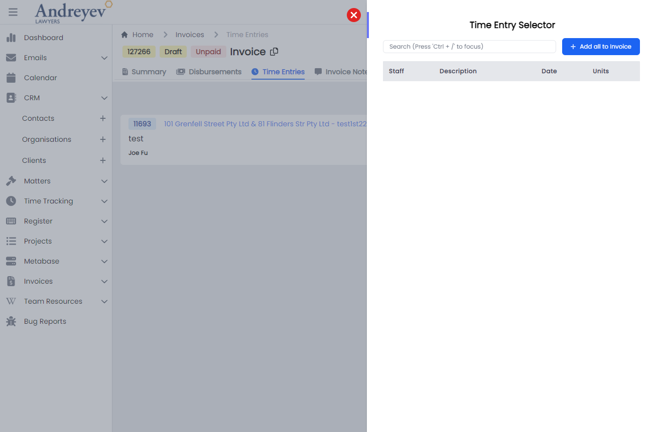 InlineAddMatterTimeEntries + InlineMatterTimeEntries