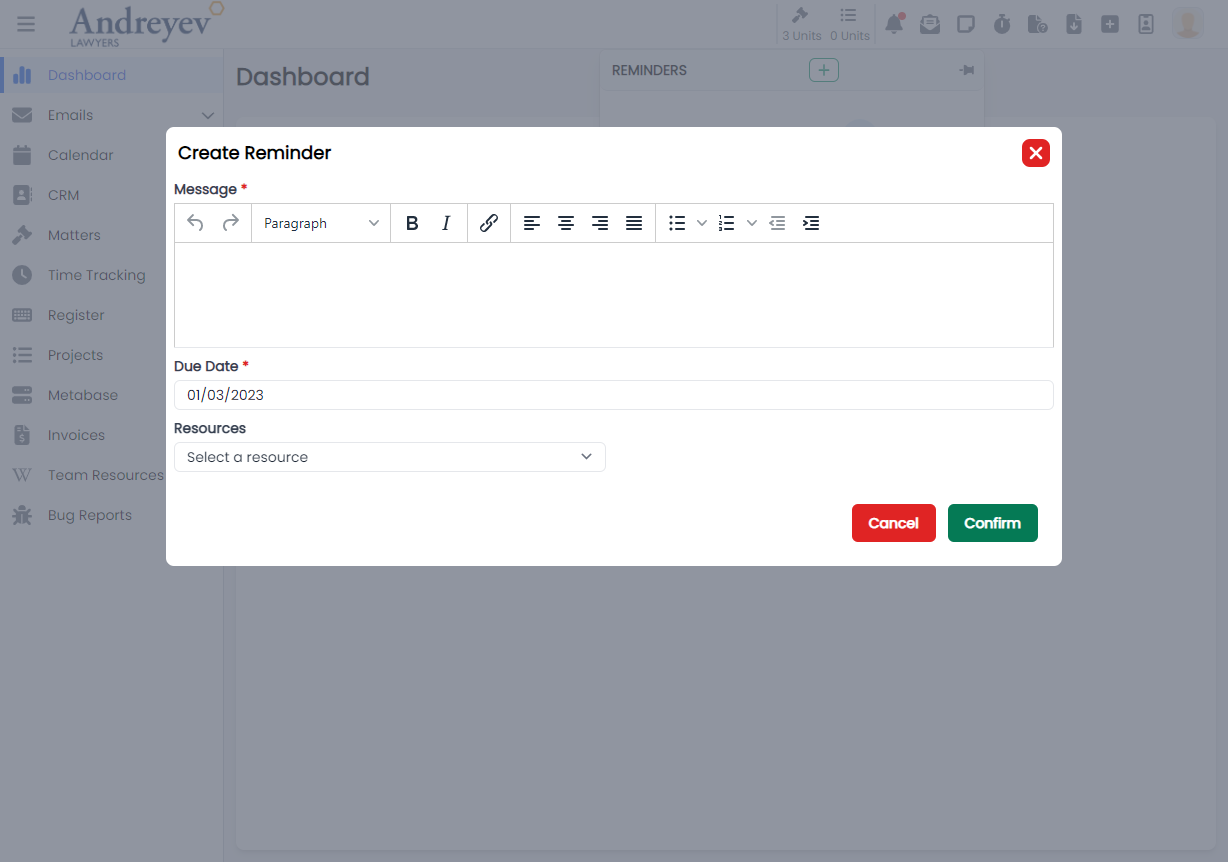 This is a modal using modalform to customise for creating a new reminder with a Due Date and Resource selector.
