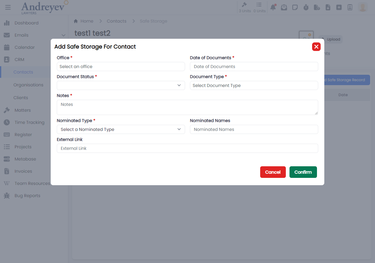 This component renders a modal using modalform, for creating a safe storage for a contact.